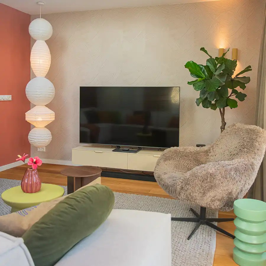 Een fijne uitbouw en dus meer ruimte! Maar hoe pakken we de rest dan aan? Welke kleuren, indeling en meubels? En hoe doen we het qua licht? Met deze vragen kwamen deze opdrachtgevers bij mij. Het doel was om een fijne kleurrijke omgeving te maken, maar wel een waar rust is en genoeg plek voor alle kinderen en kleinkinderen.