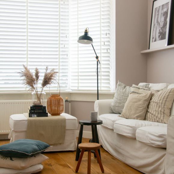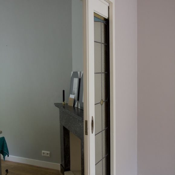 Bij aanschaf van deze woning wilde de klant een interieur wat past bij de bestaande moderne keuken maar ook bij de stijl van haar zelf. De klant houdt van het Franse, brocante, Ariadne at Home gevoel, maar dan wat stoerder. Door de kiezen in dit kleuradvies voor vergrijsde tinten en dit te combineren met een warm/koud contrast heb ik een advies neergezet waarin het zachte en stoere samenkomt. Doordat de woonkamer aan de koude kant van het huis zit, het Noorden, heb ik daar gekozen voor de vergrijsde roze tint Peignoir van Farrow and Ball. Daarnaast ligt de eetkamer/keuken pal op het zuiden. Om die warmte te compenseren heb ik voor Pavilion Gray van Farrow and Ball gekozen, een zachtgrijs/blauwe tint. Dit soort voor het samenspel met de roze tint. Door een frisse toon te geven aan het interieur, zoals ook te zien is in de stijl die de klant mooi vindt, heb ik gekozen voor de kleur All White op het houtwerk, wat ook goed overeenkomt met de bestaande modernere keuken.